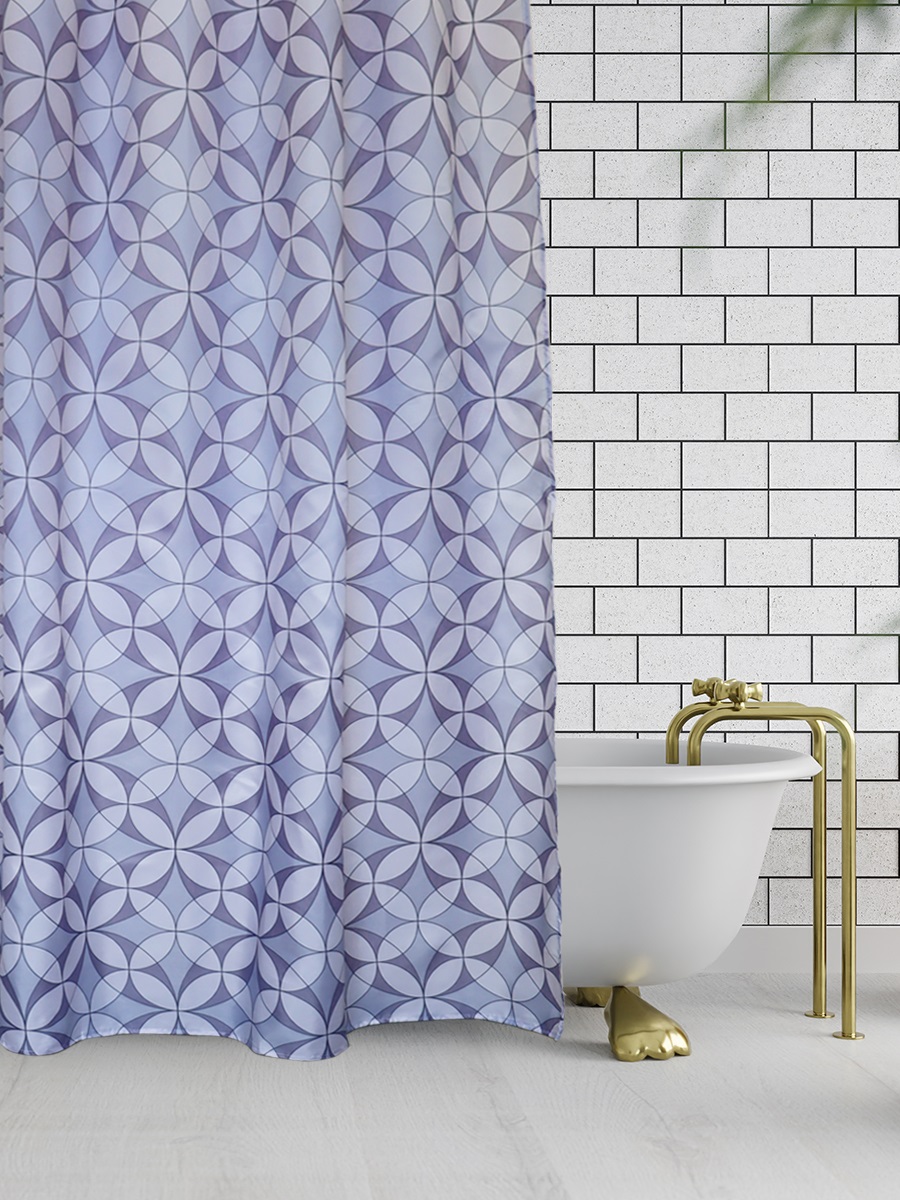 мыльной пены на пол и стены ванной комнаты. Штора для ванной имеет прошитые петли (12 шт), которые защищают шторы от случайного разрыва в местах навешивания. В комплекте идут 12 пластиковых колец, а в нижний край шторы вшит утяжелитель.