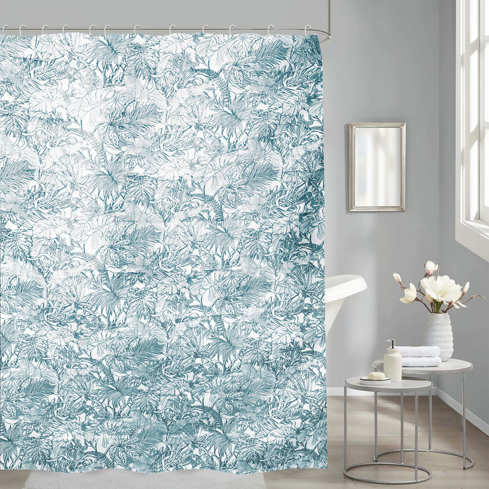 Штора выполнена из водонепроницаемого