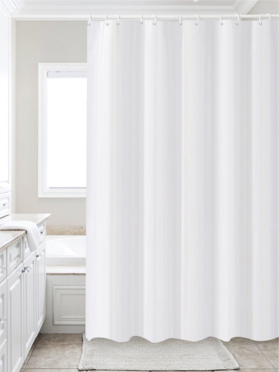 мыльной пены на пол и стены ванной комнаты. Благодаря наличию утяжелителей штора не прилипает к ванне и телу. Штора для ванной имеет металлические люверсы (12 шт), которые защищают шторы от случайного разрыва в местах навешивания. В комплекте идут 12 пластиковых колец. Размер шторы 180 х 200 см.