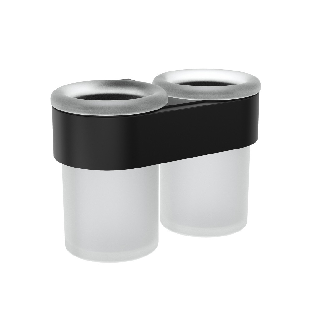 дизайне со скрытым крепежом поможет освободить полочку в ванной и дополнить интерьер. Настенное крепление изготовлено из высококачественного сплава ЦАМ, а черное матовое покрытие образует надежную защиту от коррозии. Двойной стакан необычной формы изготовлен из матового стекла.