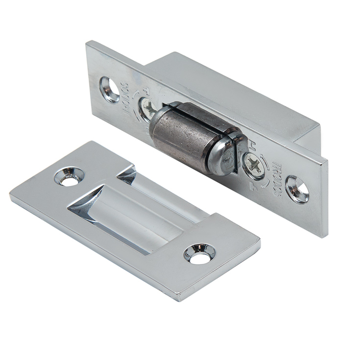 Ригель выполнен в форме ролика, поэтому для открывания не требуется поворота дверной ручки.