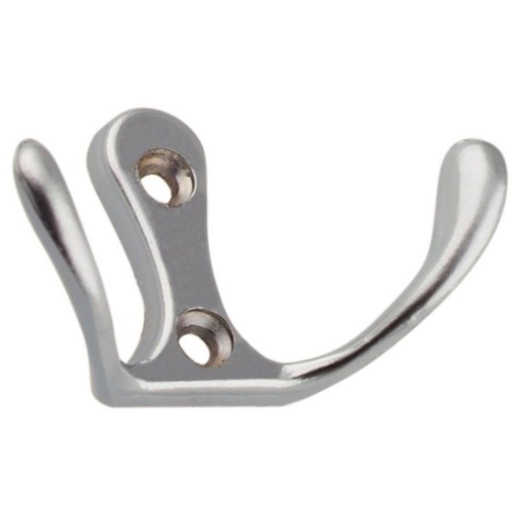 Крючок мебельный Trodos "ZY-110М" 2-рожковый, сплав ЦАМ, хром матовый