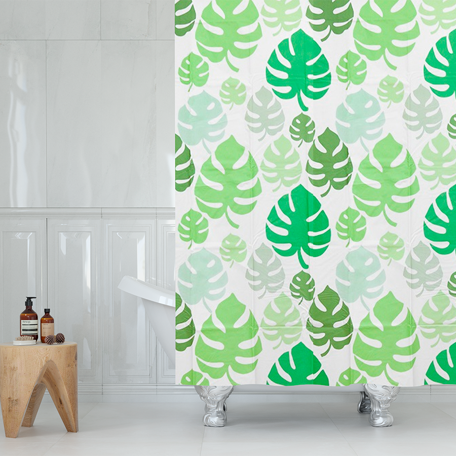Штора для ванной Delphinium "Джунгли" ПВХ 180х180см, 12 колец, зеленый