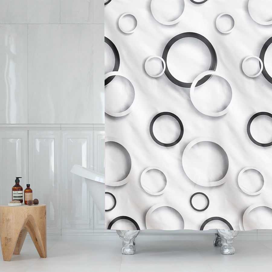 мыльной пены на пол и стены ванной комнаты. Штора для ванной имеет металлические люверсы (12 шт), которые защищают шторы от случайного разрыва в местах навешивания. В комплекте идут 12 пластиковых колец. Размер шторы 180 х 180см.