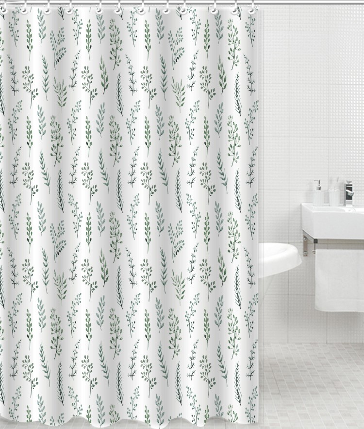 мыльной пены на пол и стены ванной комнаты. Благодаря наличию утяжелителей штора не прилипает к ванне и телу. Штора для ванной имеет металлические люверсы (12 шт), которые защищают шторы от случайного разрыва в местах навешивания. В комплекте идут 12 пластиковых колец. Размер шторы 180 х 200 см.