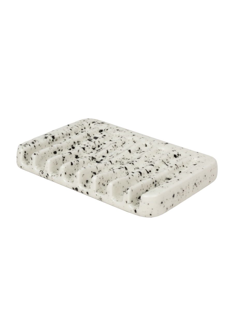 Мыльница настольная выполнена из керамики, имеет ребристую поверхность и угол наклона, благодаря чему, вода не скапливается.