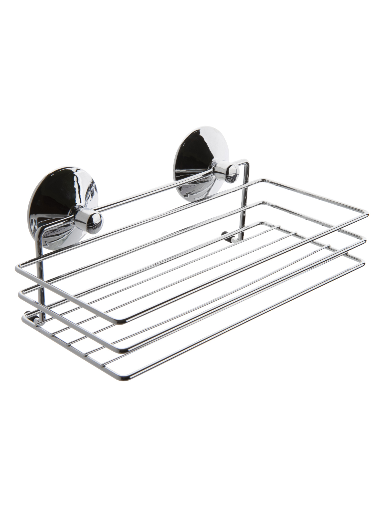 из металла с хромовым покрытием. Высокая устойчивость к коррозии. Сетчатый каркас не позволяет влаге скапливаться. Монтируется к стене при помощи двух вакуумных силиконовых присосок, закрытых пластиковыми декоративными заглушками. Максимальная нагрузка 4 кг.