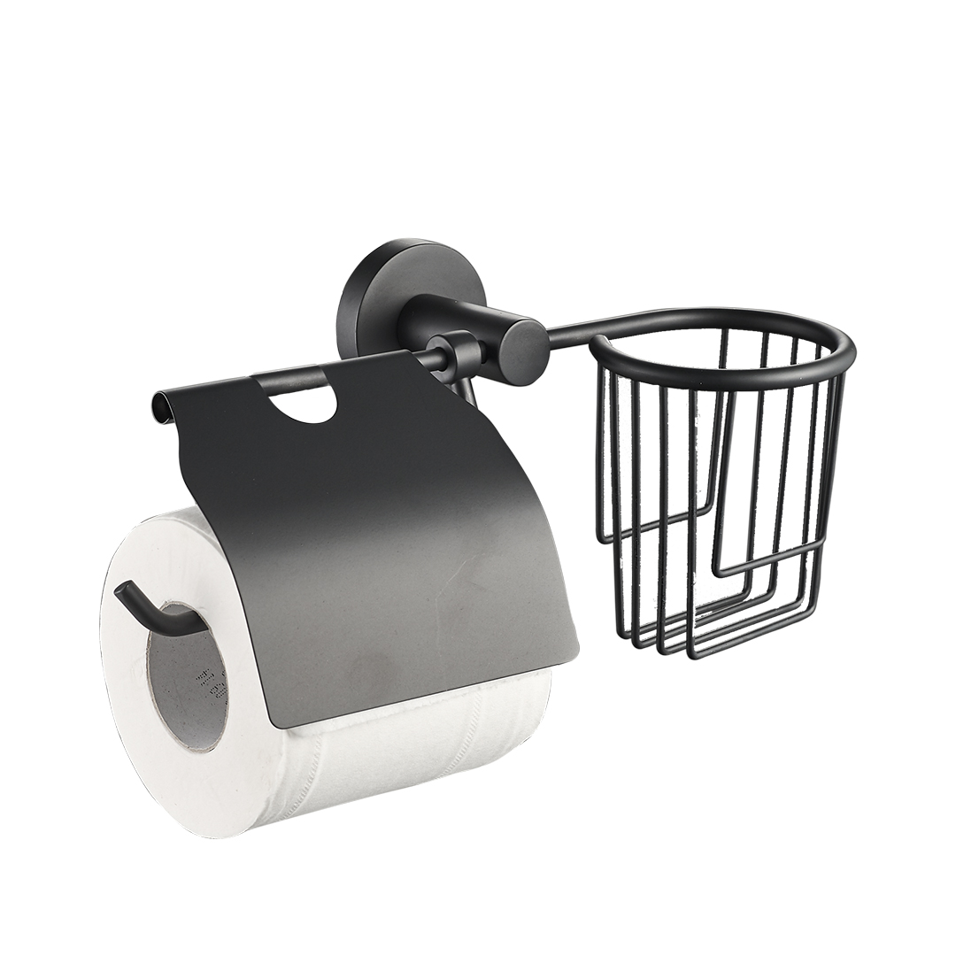 Держатель для туалетной бумаги с подставкой для дезодоранта Zenfort "20545", закрытый, чёрный