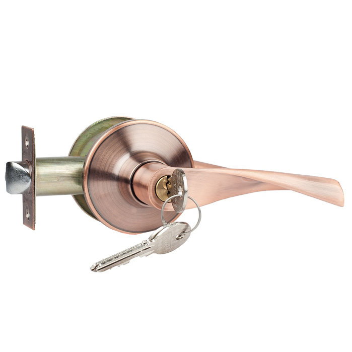 Снаружи дверь закрывается на ключ, изнутри - на фиксатор.