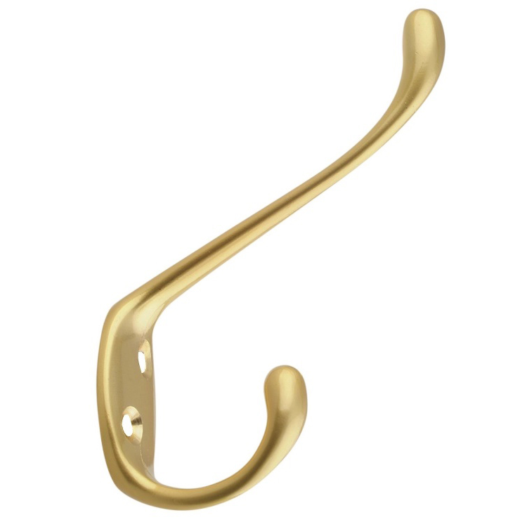 Крючок мебельный Trodos "ZY-203А" 2-рожковый, сплав ЦАМ, сатиновое золото матовый